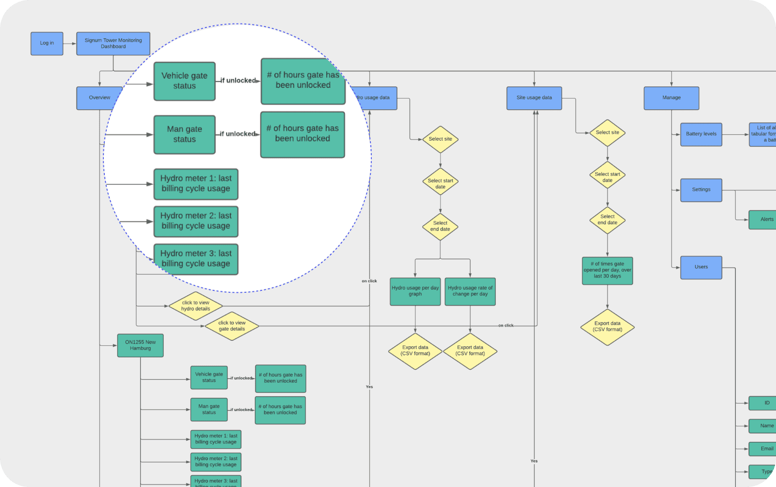 Sigfox Canada was engaged in implementing a wireless solution for SIGNUM. The work would involve installing IoT sensors on the tower gates and hydro meters to monitor real-time status and gather data. A dashboard is needed to display this information.