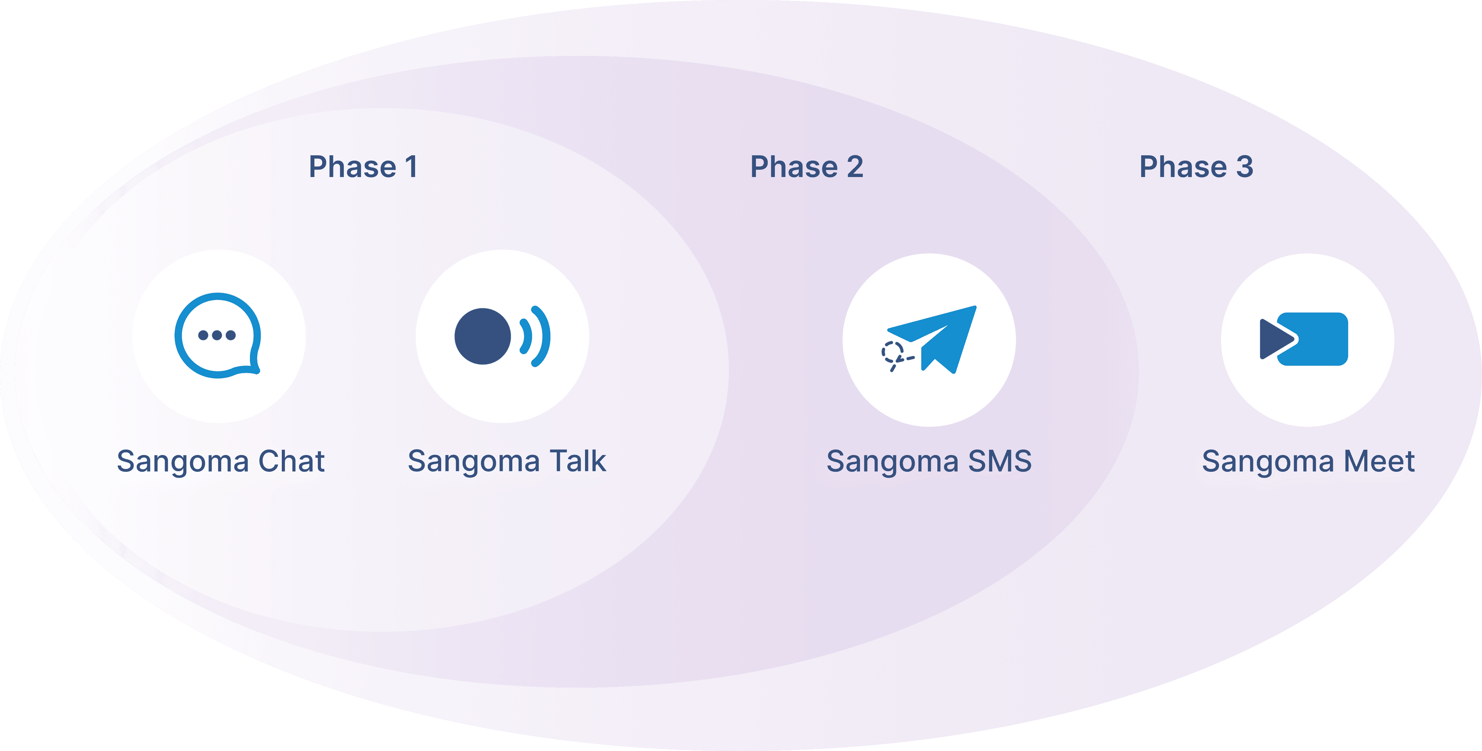 We discovered a phased approach that began with combining Sangoma Chat and Talk, then adding in SMS, followed by Sangoma Meet.
